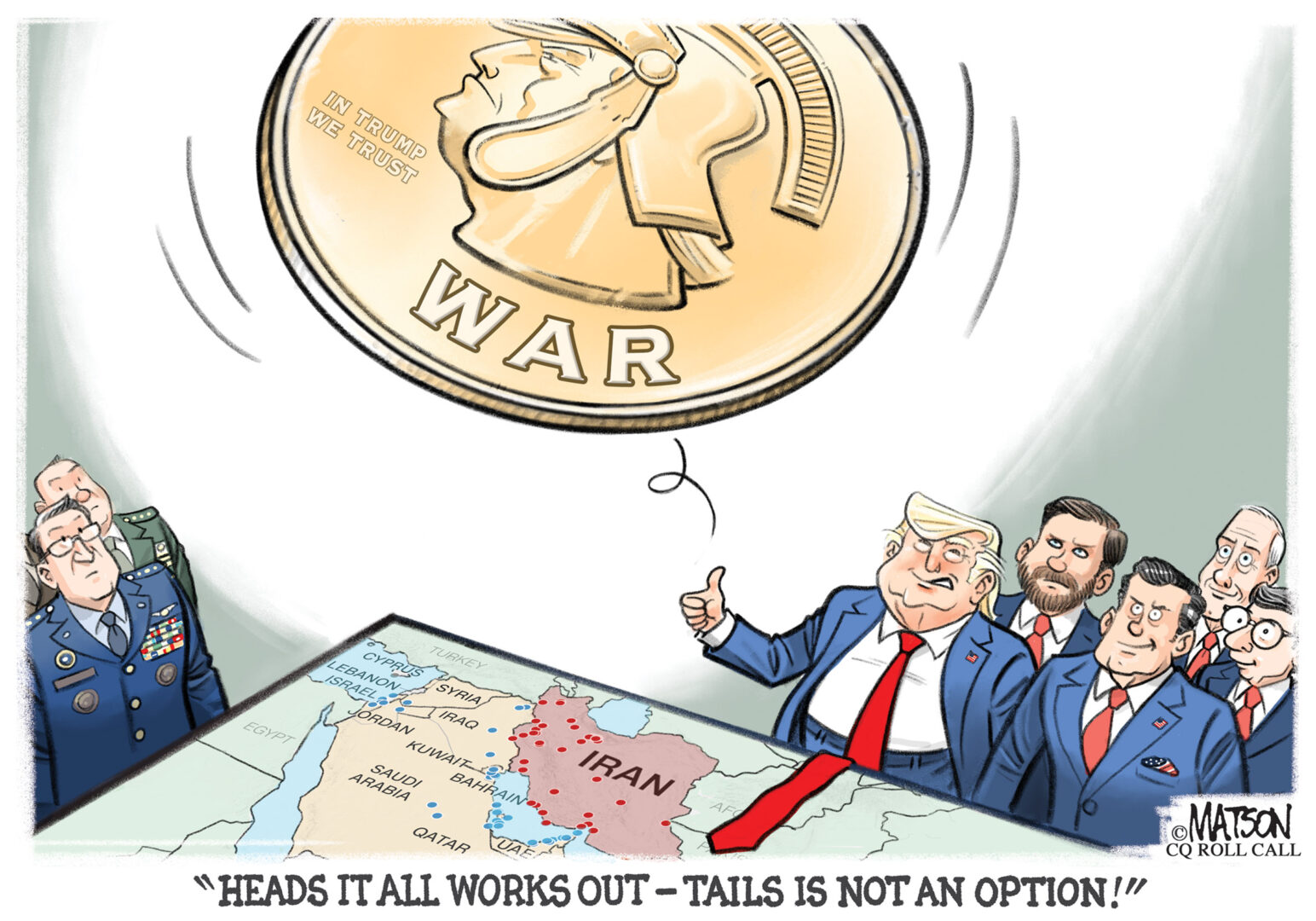 Capitol Ink Capitol Ink | Operation random fury (R.J. Matson/CQ Roll Call) By R.J. Matson Posted March 5, 2026 at 7:00am Facebook Twitter Email Reddit Recent Stories ‘When the dealin’s done’ — Congressional Hits and Misses Lawmakers buck calls to defund low-income heating program DOJ drops investigation into Fed’s Powell Photos of the week | April 17-23, 2026 Lutnick urges boost for trade enforcement at BIS Year-round E15 supporters hopeful for amendment to farm bill