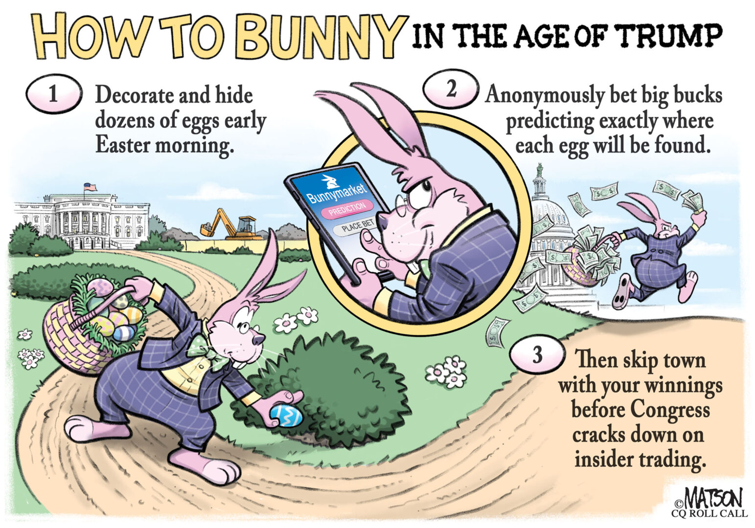 Capitol Ink Capitol Ink | Bunnymarket (R.J. Matson/CQ Roll Call) By R.J. Matson Posted April 2, 2026 at 7:00am Facebook Twitter Email Reddit Recent Stories ‘When the dealin’s done’ — Congressional Hits and Misses Lawmakers buck calls to defund low-income heating program DOJ drops investigation into Fed’s Powell Photos of the week | April 17-23, 2026 Lutnick urges boost for trade enforcement at BIS Year-round E15 supporters hopeful for amendment to farm bill