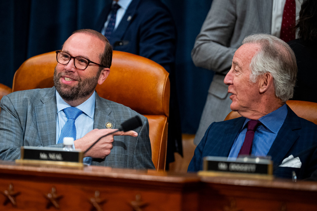 Smith, left, and ranking member Richard E. Neal, D-Mass., talk before the start of the House Ways and Means Committee hearing with HHS Secretary Robert F. Kennedy Jr. in the Longworth House Office Building on Thursday. (Bill Clark/CQ Roll Call)