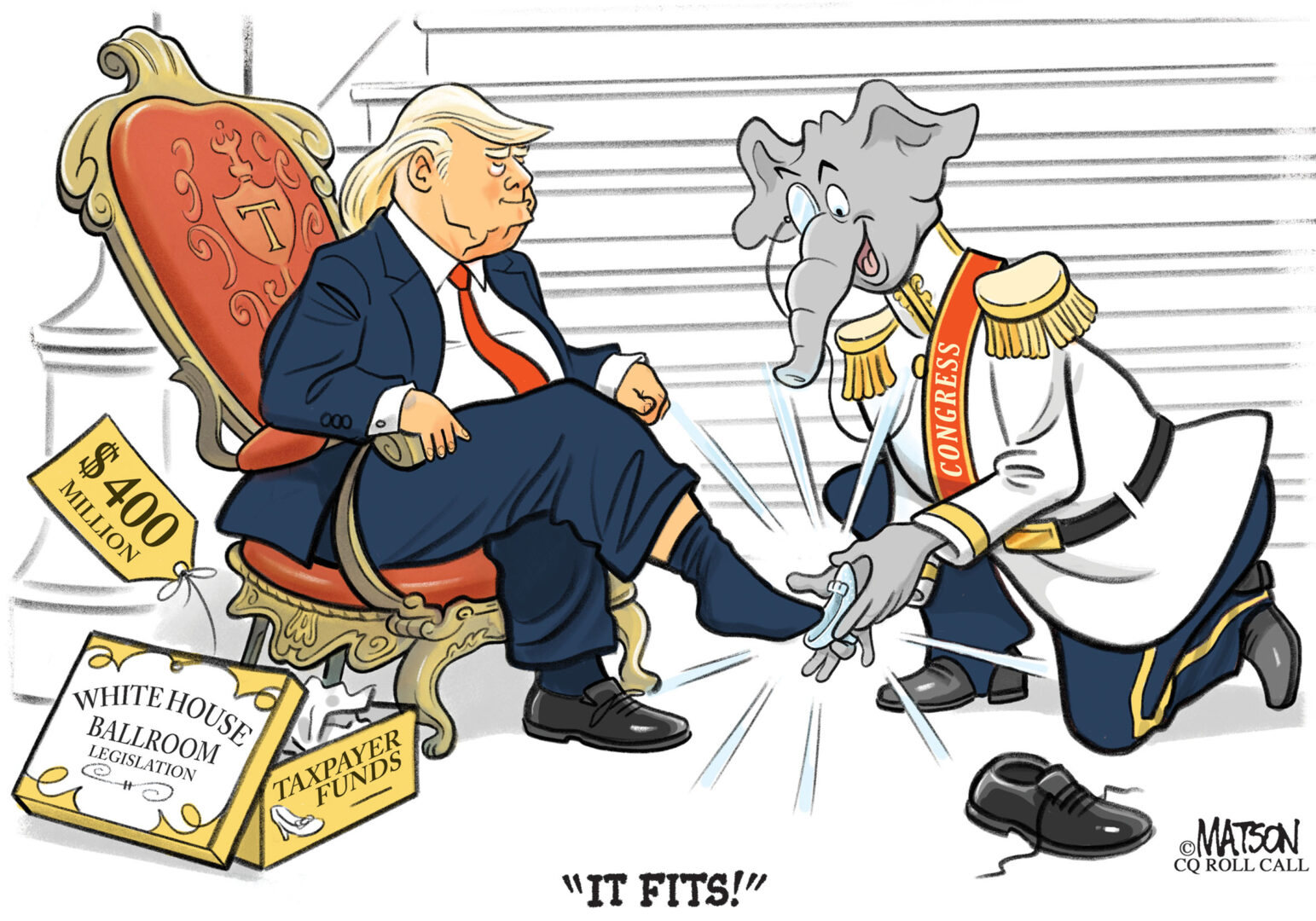 Capitol Ink Capitol Ink | Cinderella story (R.J. Matson/CQ Roll Call) By R.J. Matson Posted April 29, 2026 at 7:00am Facebook Twitter Email Reddit Recent Stories Capitol Ink | Cinderella story Family accounts would be mandated for kids in chatbots bill For one very brief moment, a king unites a divided Congress Report sexual misconduct? It’s not that simple, staffers say Justice Department indicts James Comey over seashell photo When it comes to ad reservations, parties typically don’t play games